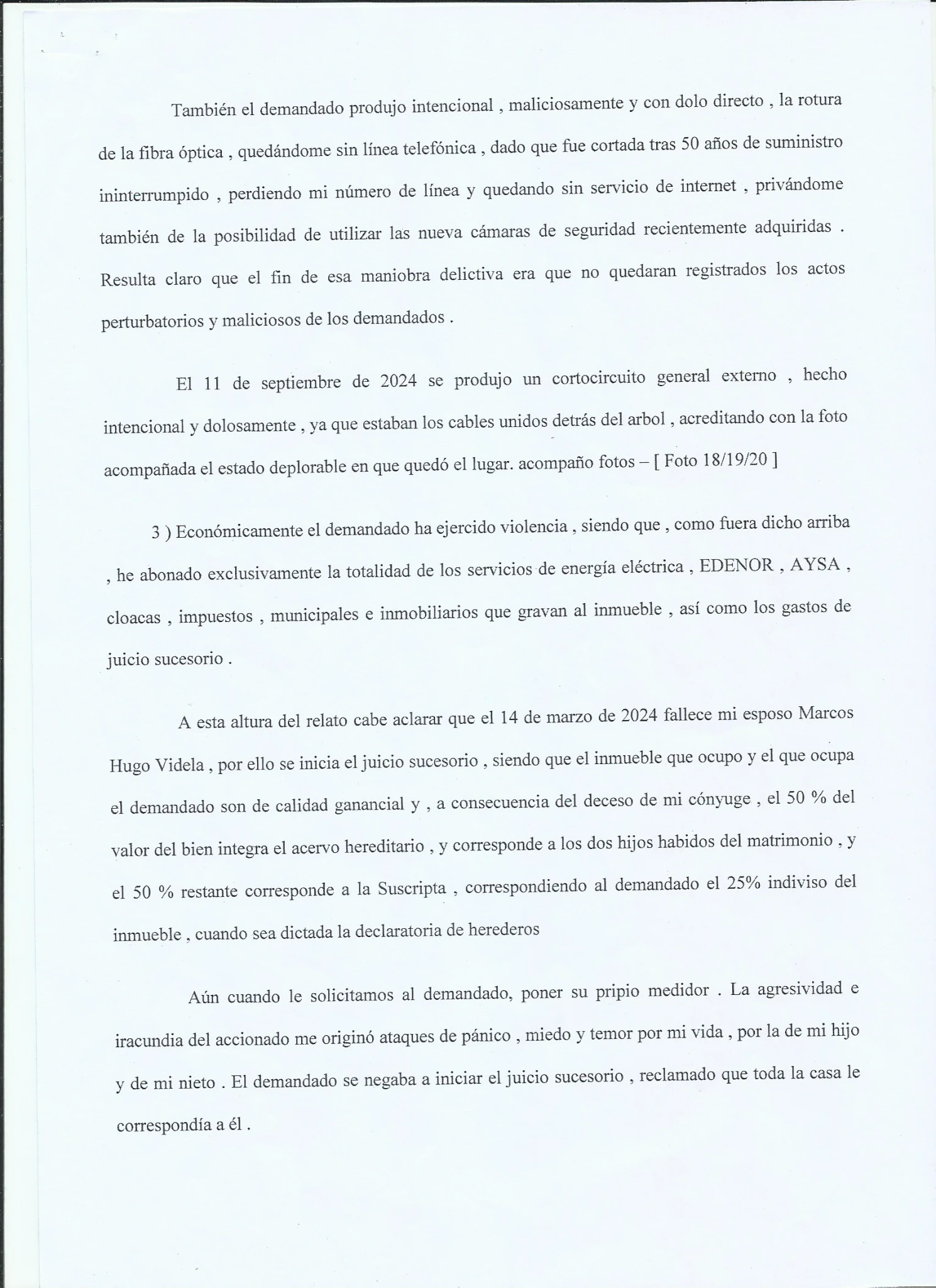 SIN PODER HACER EL DUELO EN PAZ. Realiza la Denuncia en la comisaria de la Mujer. Pidiendo la Exclusion de su HIJO Mauro Videla de SU CASA, el cual ingreso a la FUERZA, Mintiendo y sin Pagar Servicio Electrico ni servicios..