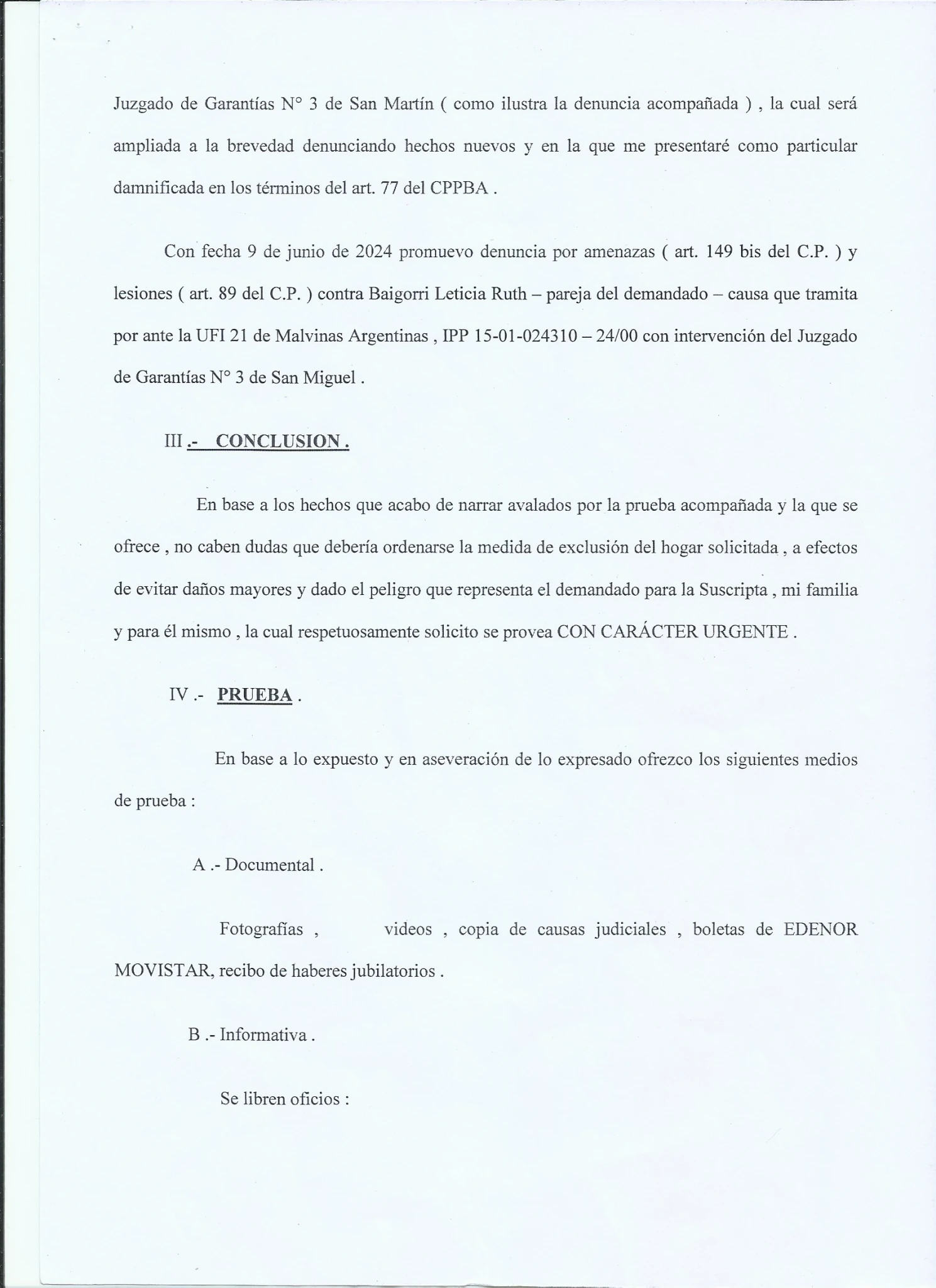 1-AR- DENUNCIA EN LA COMISARIA DE LA MUJER 31/5/24