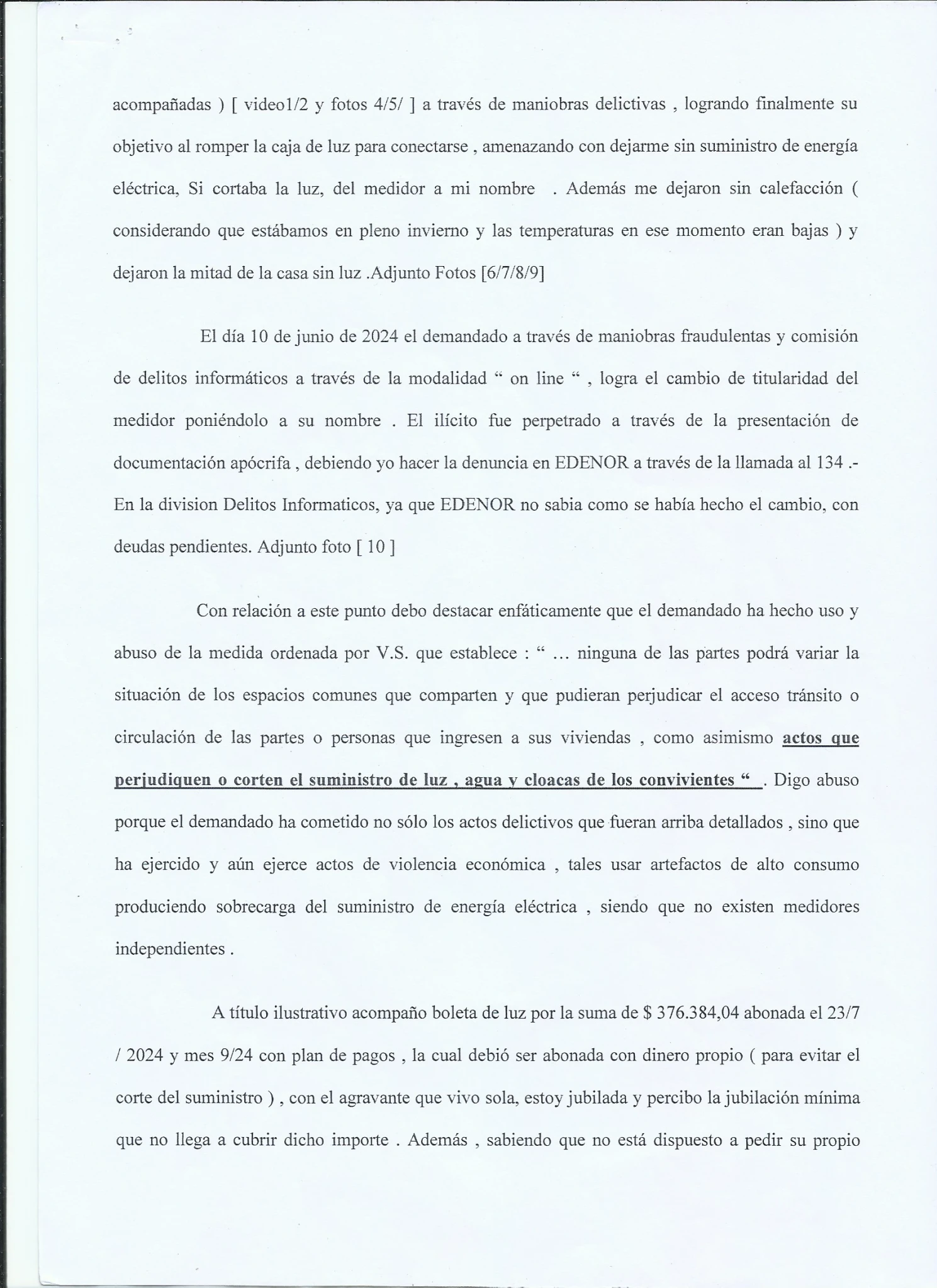 DESPUES DE TODO lo pasado, durante 2 Años. LO IMPORTANTE para el JUZGADO DE PAZ. era que ALBA ESTELA ROCHA, ASUMIERA LOS GASTOS, DE LUZ SIN IMPORTAR LAS FACTURAS EXORBITANTES, QUE SE CONSUMIAN, CON EL FIN DE QUE SE CORTE EL PAGO, LA CASA SE QUEDE SIN LUZ Y TOMAR ...LA CASA..